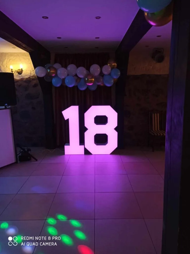 W ramach mojej oferty chciałbym przedstawić Ci dodatkową atrakcję, jaką jest wynajem podświetlanej cyfry "18". Ta imponująca konstrukcja o wysokości 120 cm doskonale komponuje się w oprawie uroczystości urodzinowych, dodając imponującego efektu wizualnego. To wspaniałe tło stanowi nie tylko doskonałe miejsce do robienia zdjęć, ale także podkreśla wyjątkowość tego ważnego dnia.